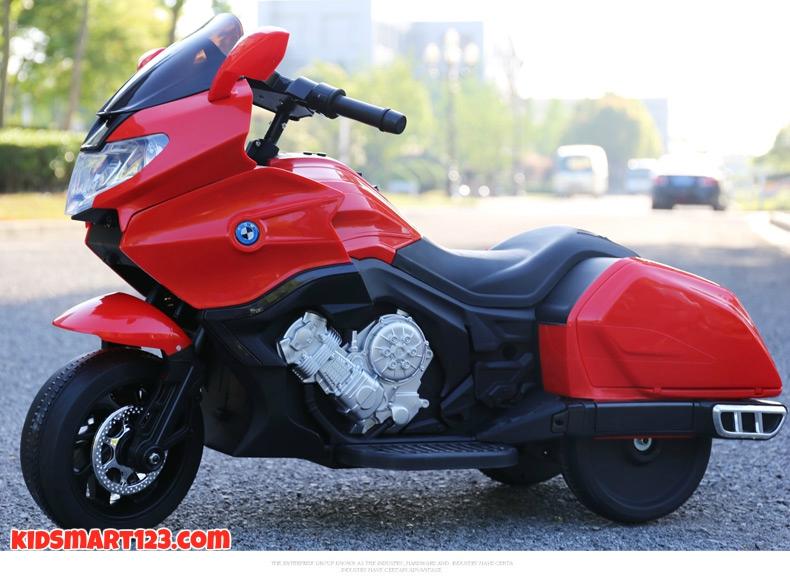 Xe máy điện trẻ em CX 6066 - với thiết kế kiểu sáng xe phân khối lớn BMW rất ngầu cà cá tính xe có 2 bánh sau và một bánh trước giúp bé giữ cân bằng xe một cách dễ dàng không bị đổ.Đầu xe là đầu của chiếc phân khối lớn BMW đuôi xe có thùng để đựng đồ rất tiện dụng.