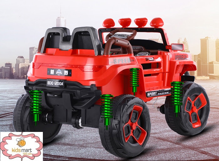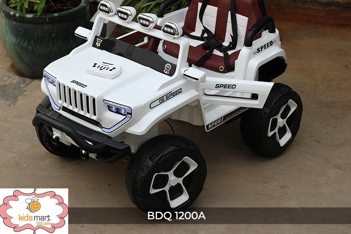 Chiếc xe ô tô điện Jeep-1200 được thiết kế với với kiểu dáng mô phỏng xe Jeep hầm hố, gầm cao, bánh xe lớn, thiết kế vuông góc cạnh, tích hợp 4 động cơ mạnh mẽ. Chơi với xe sẽ giúp các bé cảm nhận hoàn hảo những chuyến đi, trực tiếp ngồi vào buồng lái, khởi động, lái xe, vi vu qua những chuyến phiêu lưu quanh nhà hay hòa cùng cuộc vui chơi xe cùng bạn bè.
